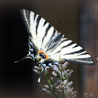 Le temps que j'aille chercher mon appareil photos, le bel invité sur les fleurs de lavande avait disparu. J'ai prié très fort le dieu des papillons, le dieu des animaux, le dieu de la nature pour que celui que j'avais cru être un machaon revienne.